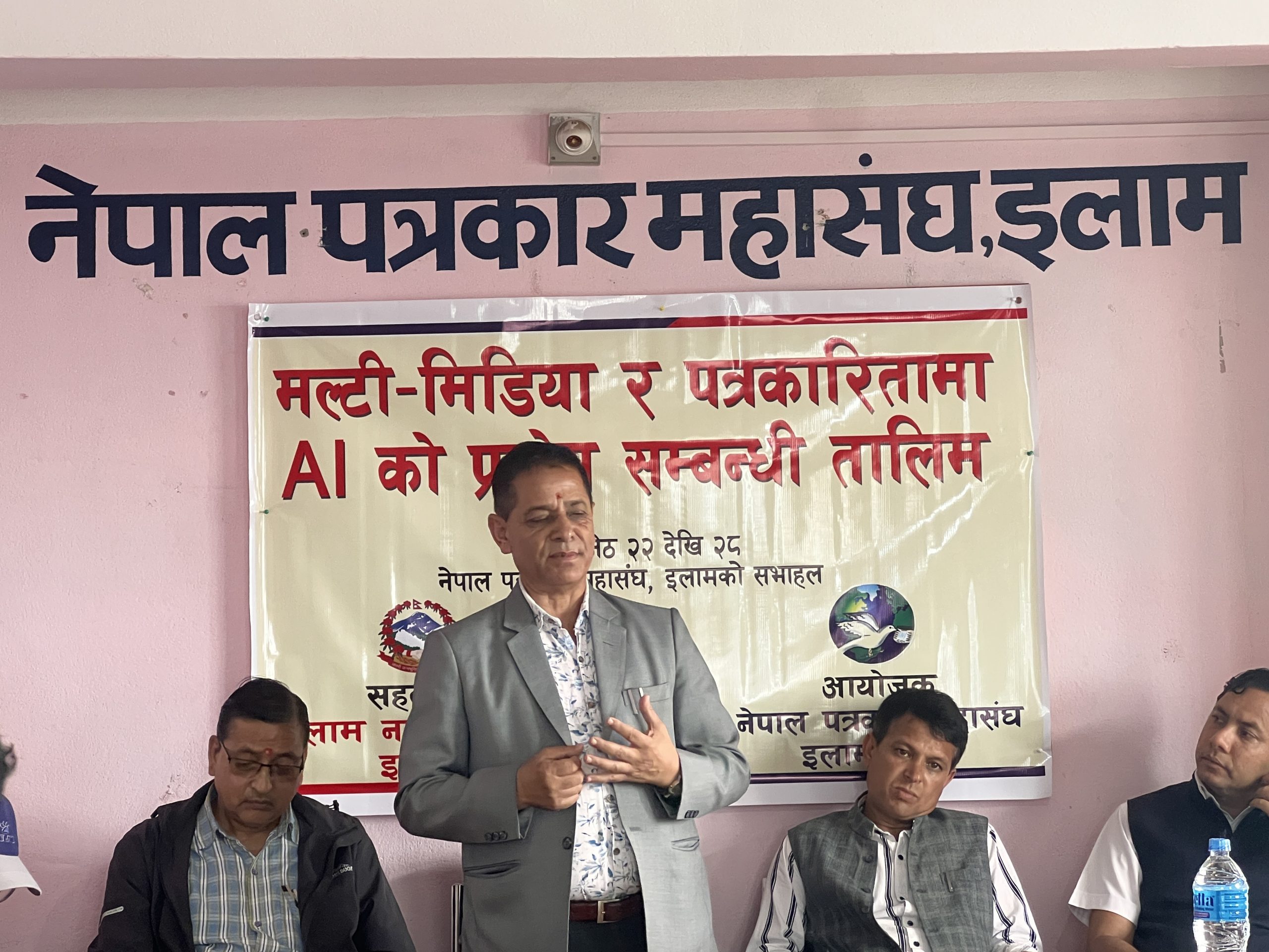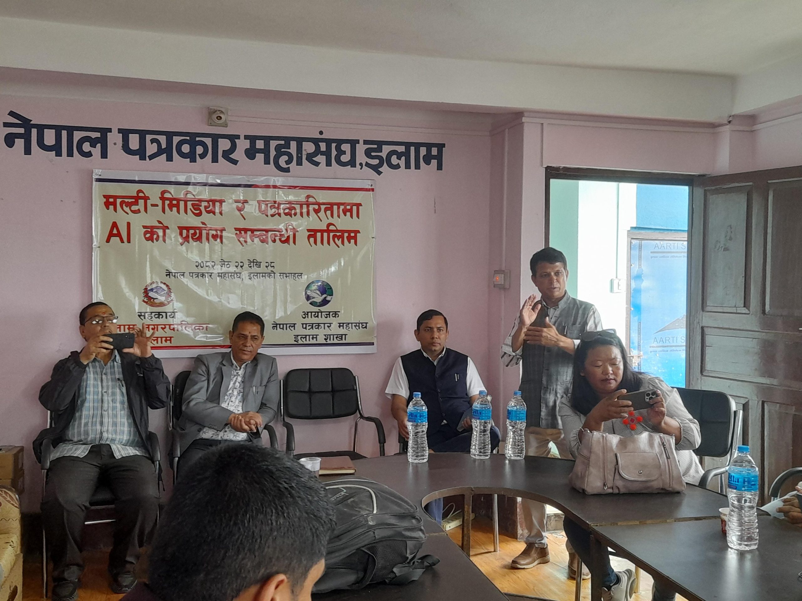 इलाम,२२जेठः नेपाल पत्रकार महासंघ इलामले यहाँका पत्रकारलाई आधुनिक प्रबिधिसँग नजिक बनाउन मल्टी मिडिया र पत्रकारितामा एआइ सम्बन्धी तालिम सुरु गरेको छ । प्रविधिको विकास सँगै पत्रकारितालाई परिवर्तित गर्न तालिम आयोजना गरिएको महासंघ अध्यक्ष भीम चापागाईले बताउनुभयो । बिहिबार इलाम नगरपालिकाका नगरप्रमुख केदार थापाले उद्घाटन गर्नुभएको उक्त तालिममा जिल्लाभरका क्रियाशील ३० भन्दा बढी पत्रकारहरुको सहभागीता छ ।