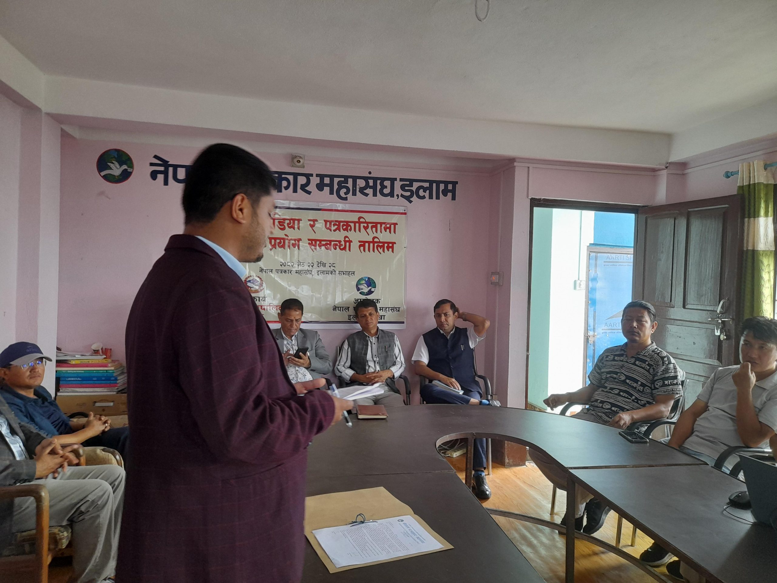 इलाम नगरपालिकाको सहयोगमा सुरु भएको तालिमको उद्घाटन गर्दै नगर प्रमुख थापाले अहिलेको प्रविधिसँग जिल्लाका पत्रकारहरु पोक्त हुन सकुन भन्ने नगरपालिकाको अपेक्षा रहेको बताउनु भयो । ‘प्रविधिले पत्रकारहरुलाई अल्छी नबनाओस, तर प्रविधि सँग खेल्न सक्ने बनाओस भन्ने हाम्रो अपेक्षा छ ।’ प्रमुख थापाले भन्नुभयो ।