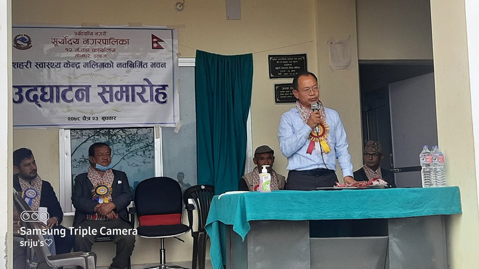 फिक्कलः सूर्योदय नगरपालिका वडा नं १२ मलिममा नवनिर्मित शहरी स्वास्थ्य केन्द्र भवनको उद्घाटन गरिएको छ । नगरप्रमुख रण बहादुर राईले एक कार्यक्रमका बिच बुधबार उद्घाटन गरेका हुन् । नगरको एक वडा एक स्वास्थ्य चौकीको अवधारणा अन्तर्गत करिब ६४ लाख लागतमा भवन निर्माण सम्पन्न भएको हो । नवनिर्मित स्वास्थ्य केन्दबाट प्राथमिक उपचार गरिने जनाईएको छ । करिब ४० प्रकारका औषधी निशुल्क रुपमा वितरण हुने केन्द्रले जनाएको छ । ३ जनशक्ति रहेको ५ कोठे भवनबाट तत्काल स्वास्थ्य सेवा प्रवाह गरिने सूर्योदय युवा नगर परिषद वडा नं १२ प्रतिनिधि शिर्जना राईले जानकारी दिईएकी छन्
