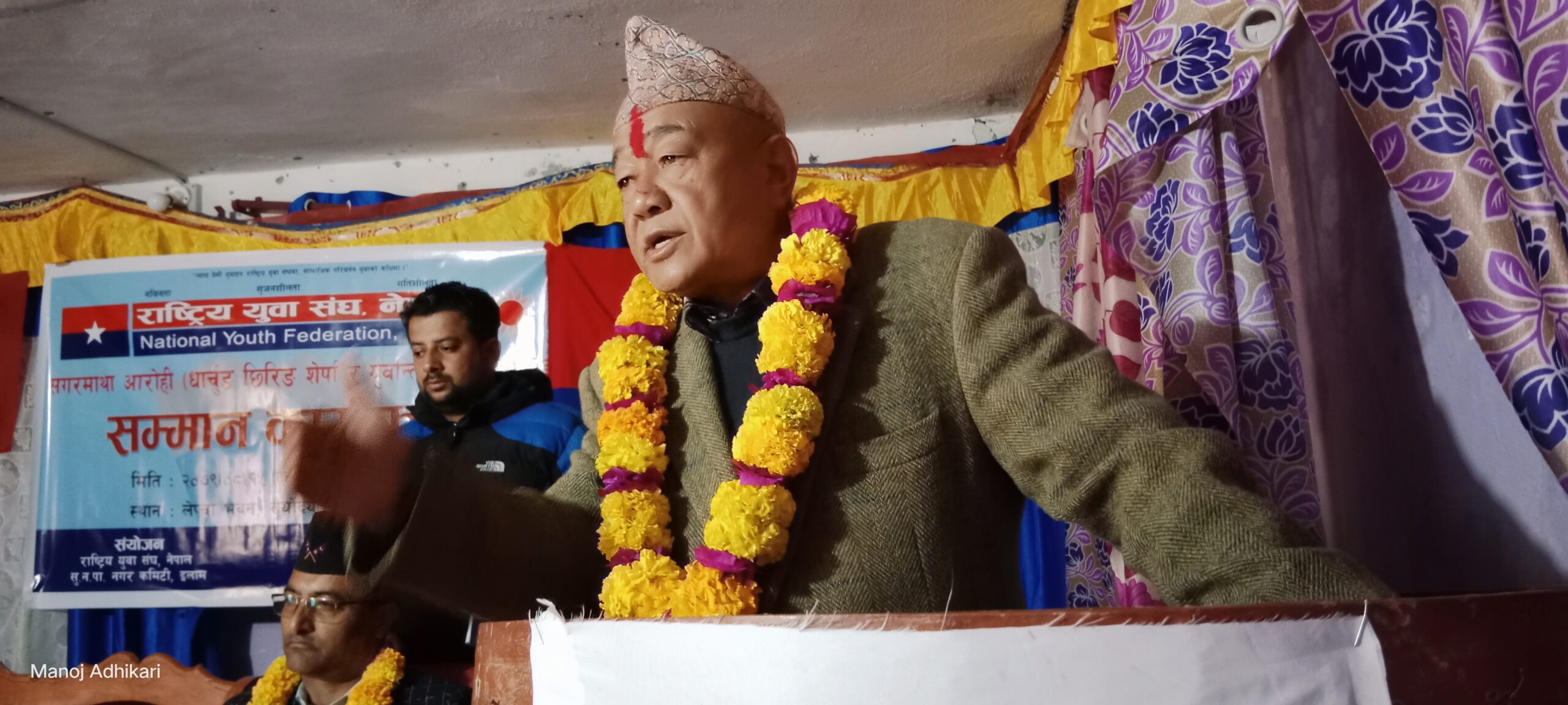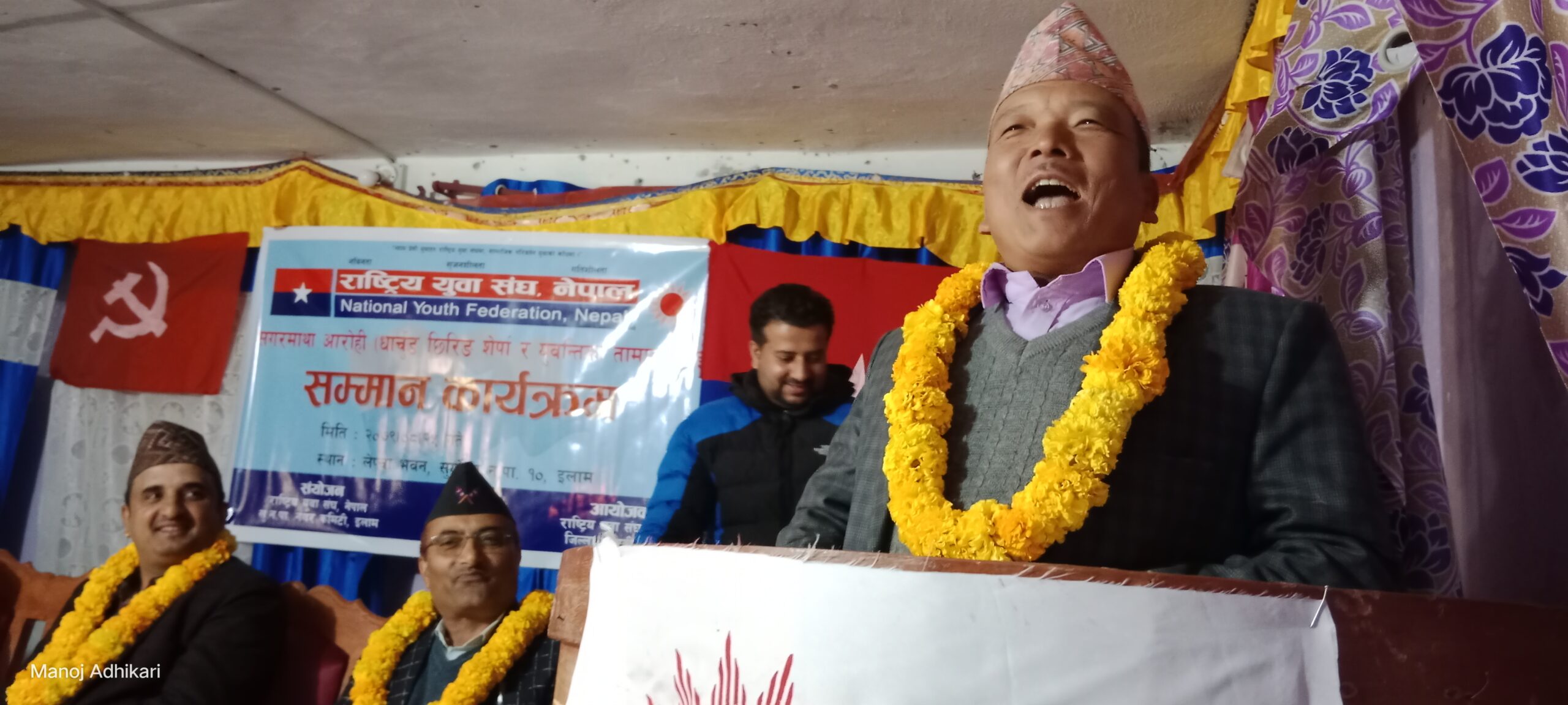 नेकपा जिल्ला सदस्य युवराज बाशिष्ट, सूर्योदयन गर कमिटि अध्यक्ष दुर्गादेवि भट्टराई, जिल्ला सल्लाहकार सदस्य रमेश राई, सूर्योदय नगरपालिका वडा नं २ का वडाध्यक्ष एवं नगनर सामाजिक विकास समिति संयोजक डिक बम्जन, कार्यपालिका सदस्य सावित्रा शिवा लगायतको आतिथ्यता रहेको कार्यक्रम राष्ट्रिय युवा संघ नेपाल,इलामका अध्यक्ष चन्द्र पाठकको अध्यक्षतामा सम्पन्न भएको थियो । राष्ट्रिय युवा संघ नेपाल,इलामका जिल्ला उपाध्यक्ष कन्चन राईले स्वागत मन्तब्य राख्नुभएको कार्यक्रमको संचालन सचिव दिनेश ढकालले गर्नुभएको थियो । (रासस)