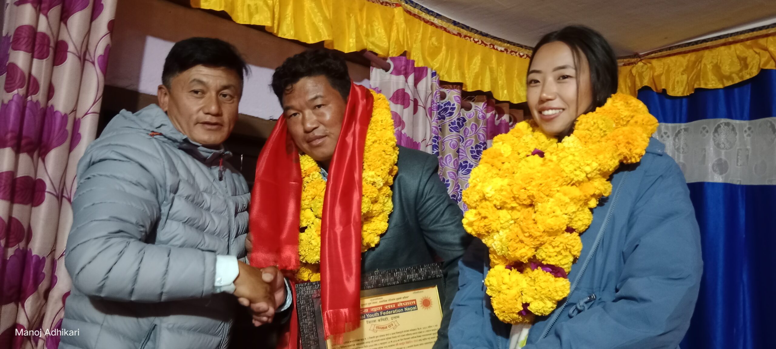 फिक्कल,२५ मङ्सिर ः विश्वको सर्वोच्च शिखर सगरमाथा आरोहण गर्ने इलामका दुई जनालाई सम्मान गरिएको छ । नेकपा (एमाले) को भातृ संगठन राष्ट्रिय युवा संघ नेपाल, इलामको आयोजनामा सगरमाथा आरोही धार्चुङ छिरिङ शेर्पा र युवन्तिका तामाङ्गलाई आईतबार सम्मान गरिएको हो ।